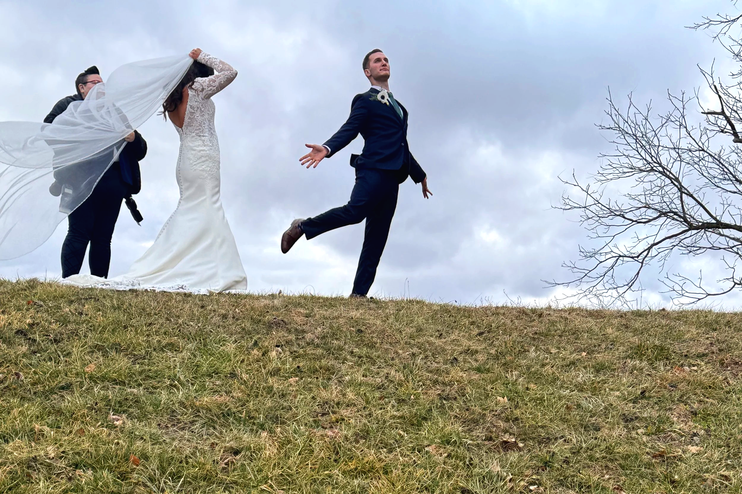 The weather was wet and dreary on this wedding day but the spirit and vibes of the bride and groom were not!